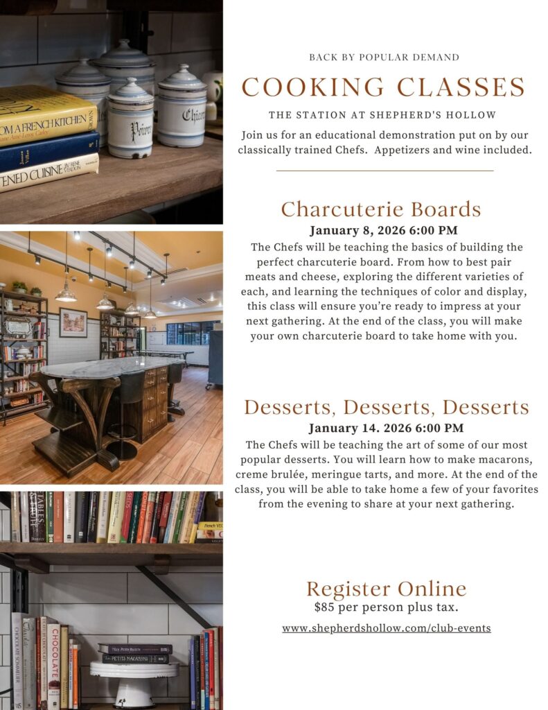 The Chefs will be teaching the art of some of our most popular desserts. You will learn how to make macarons, creme brûlée, meringue tarts, and more. At the end of the class, you will be able to take home a few of your favorites from the evening to share at your next gathering.