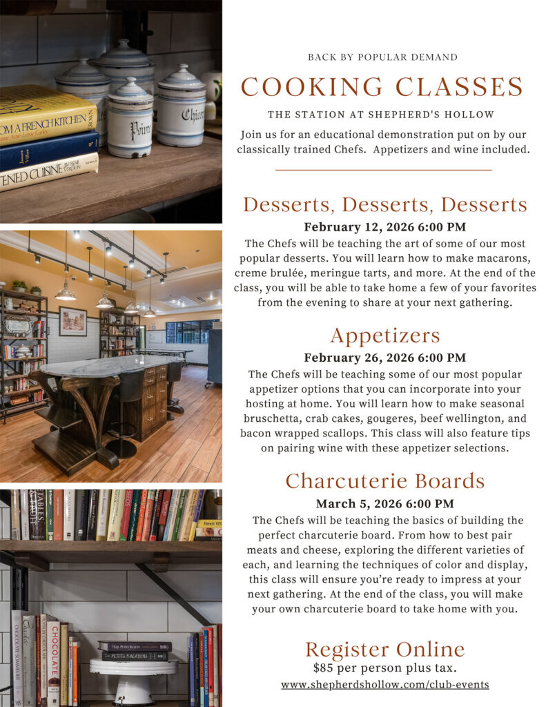 The Chefs will be teaching some of our most popular appetizer options that you can incorporate into your home hosting. You will learn how to make seasonal bruschetta, crab cakes, gougeres, beef wellington, and bacon-wrapped scallops. This class will also feature tips on pairing wine with these appetizer selections.