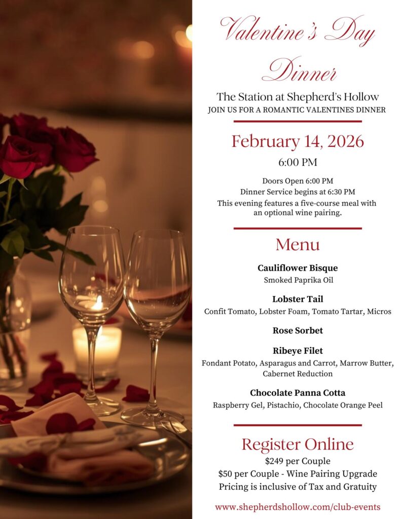 Join us for an unforgettable romantic Valentine’s dinner. This evening features a five-course meal with an optional wine pairing.