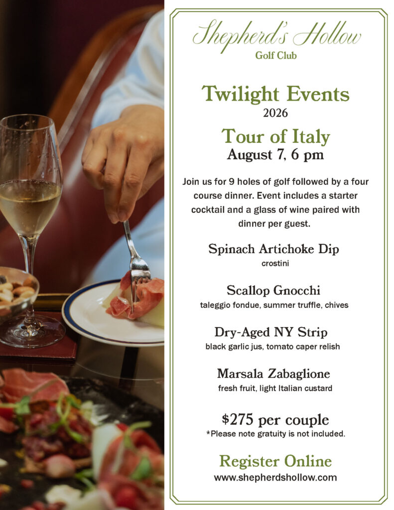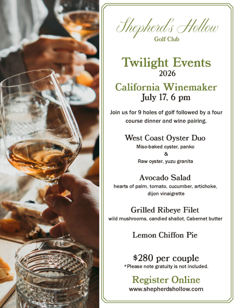 Join us for 9 holes of golf followed by a four-course dinner and wine pairing.